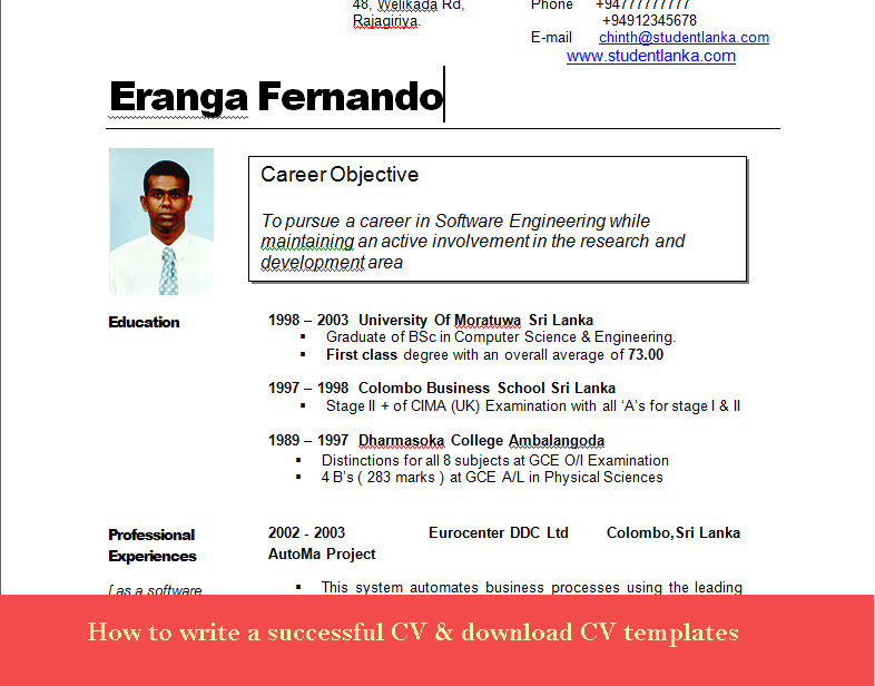 Cv sri lanka top job bank job application cv. How to write a resume *pick a resume format with the sections you need *always include contact information, work experience, and education *use traditional headings for maximum compatibility *include applicable skills directly from the job.