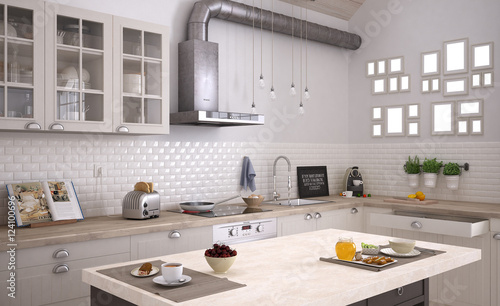It is suitable for kitchens in small homes .scandinavian kitchen interior. It emphasizes clean lines, utility, and simple furnishings that are functional, beautiful, and cozy.
